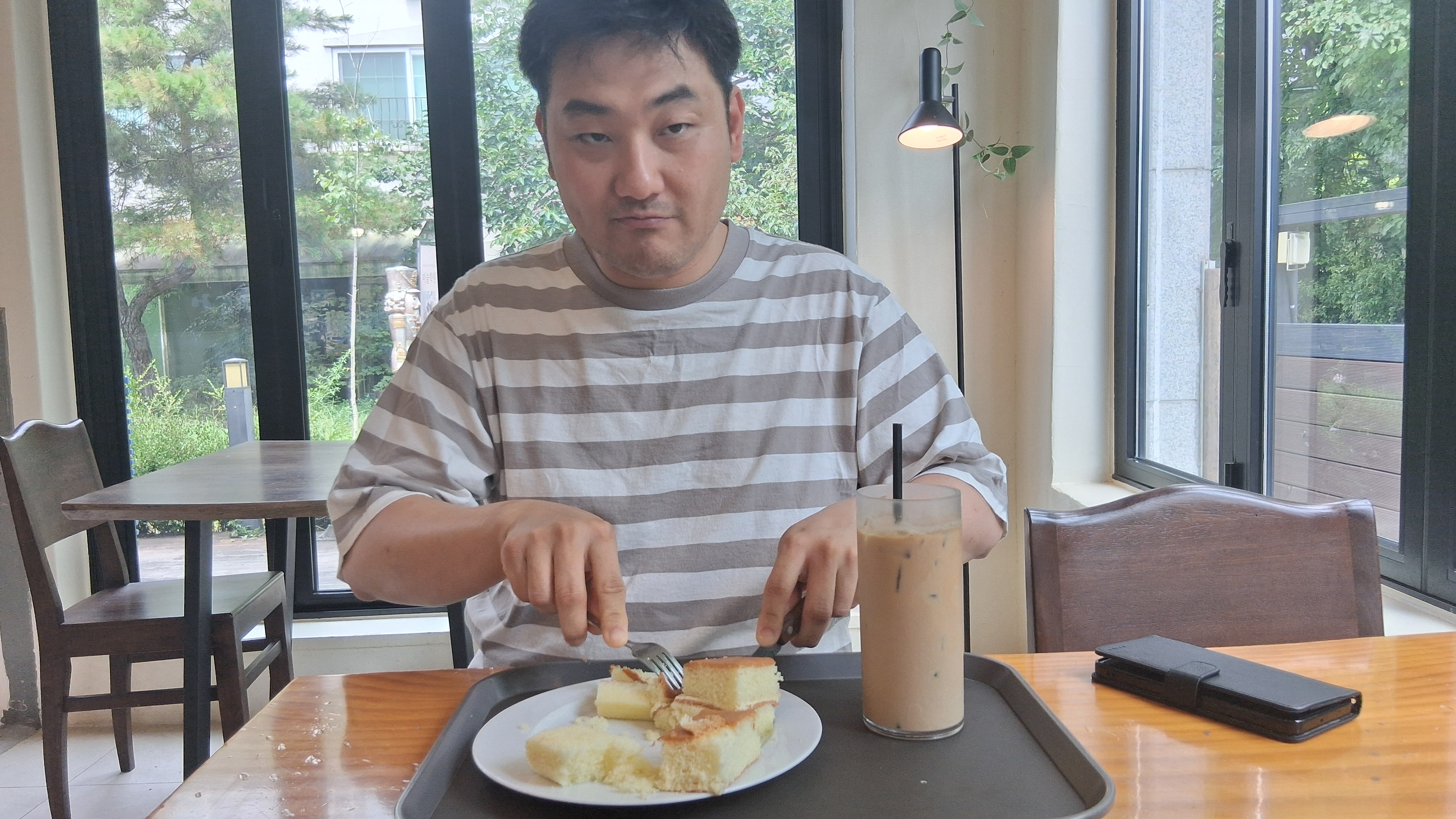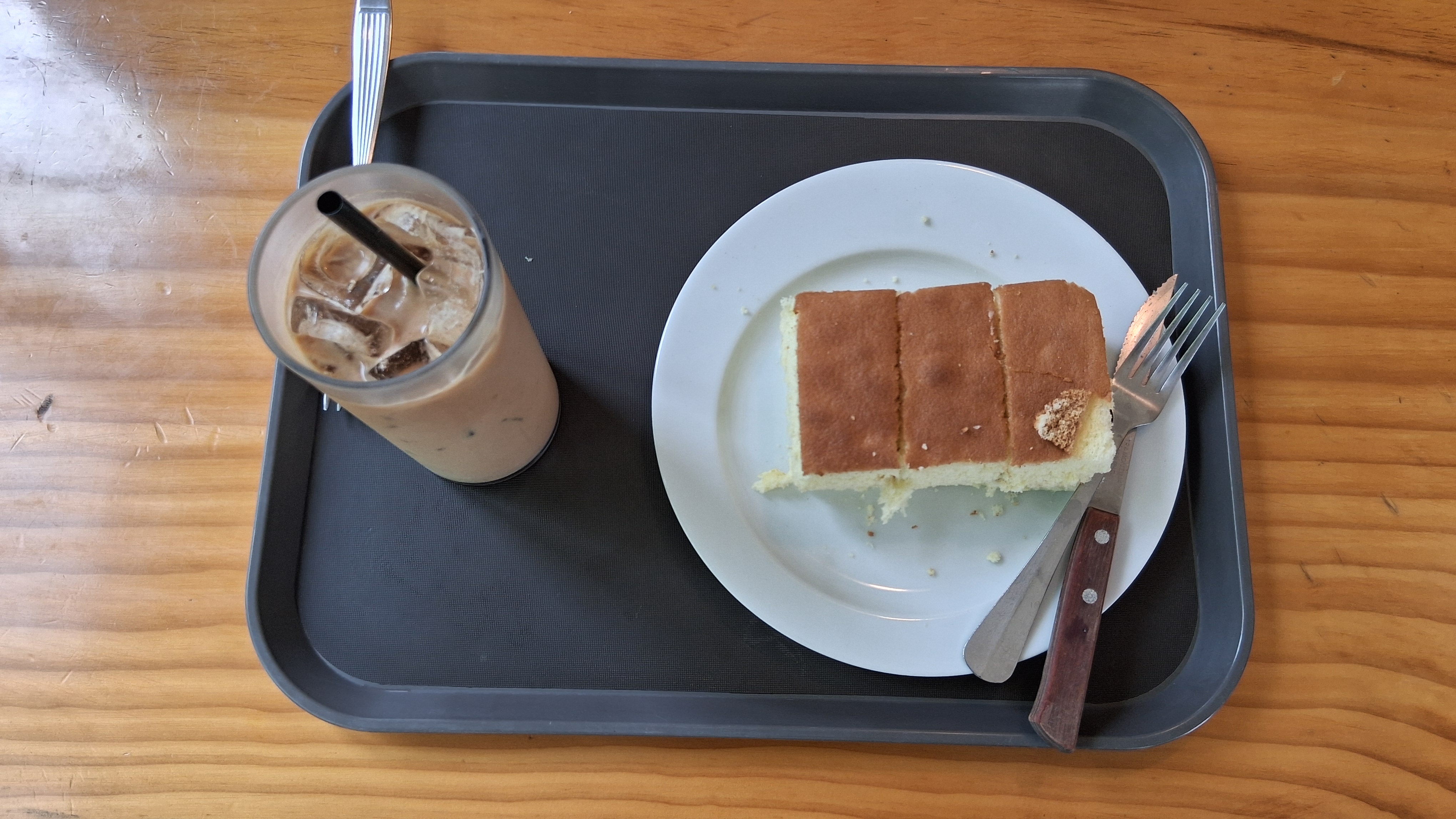 아이스 카페라떼와 카스테라